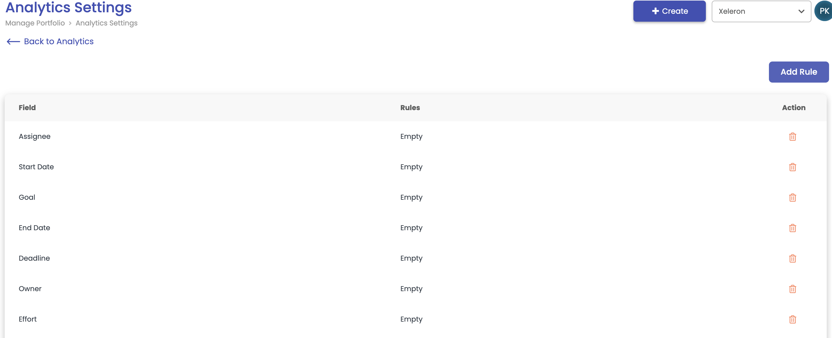 In the analytics settings, configure rules based on the fields you want to verify in your portfolio to ensure they are not empty