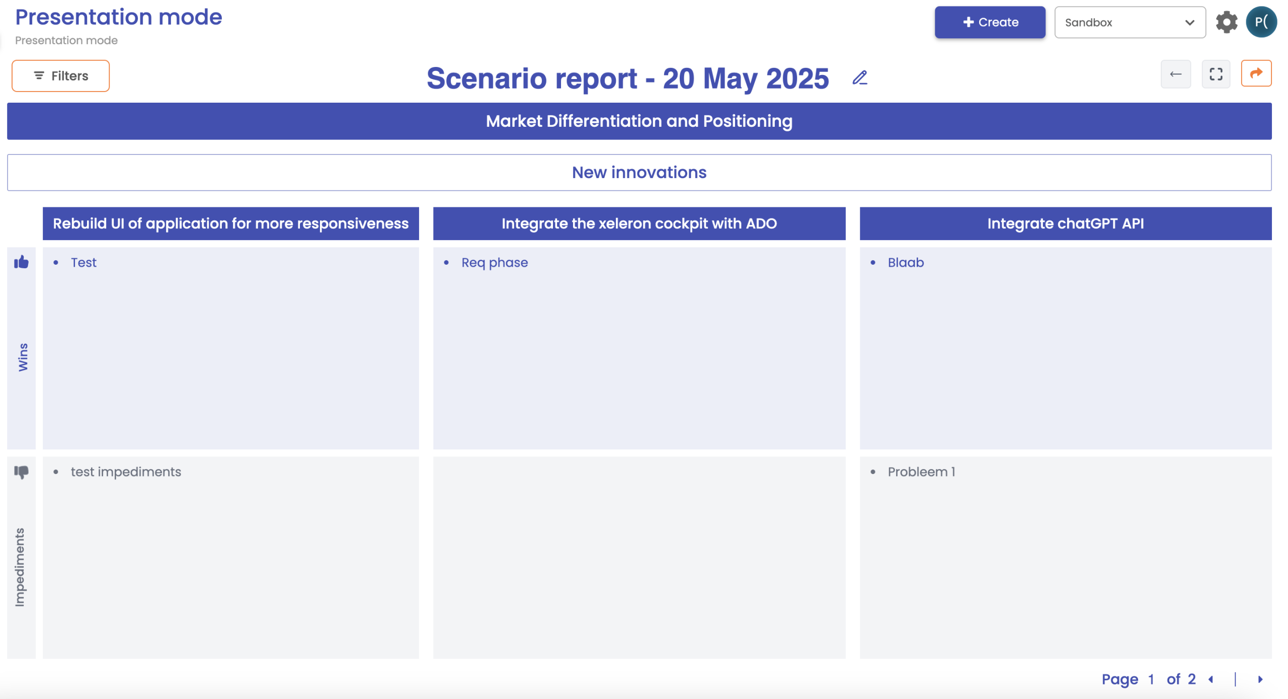 Presentation mode streamline strategic reporting and improve clarity for decision-makers through a structured, easily navigable visual format.